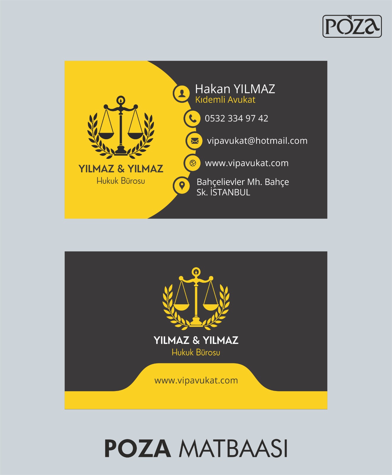 • 5,2 * 8,2 cm standart avukat kartviziti ebatlarındadır. ( isteğinize göre farklı ebat ve özelliklerde de çalışmalar yapılabilmektedir. )